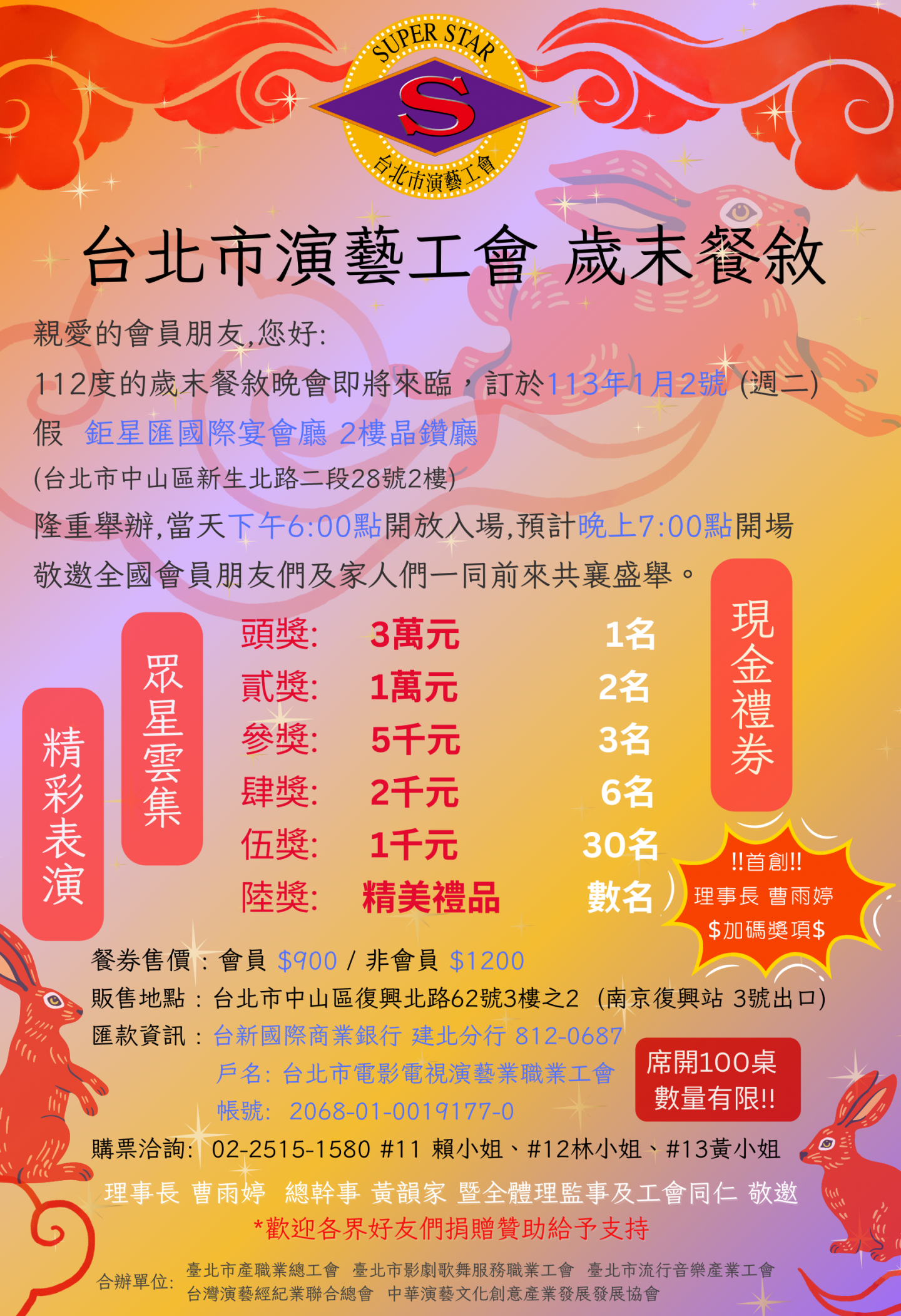 處理演藝同仁的勞、健保事務 ,舉辦各式藝文活動,提供全方位演藝技能之課程,創造演藝工作機會